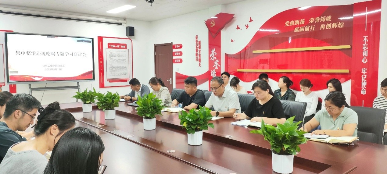 2025年6月19日,党委委员、副校长黄振中以普通党员身份参加3044AM永利集团党总支集中整治违规吃喝专题学习研讨会,并围绕集中整治违规吃喝问题与3044AM永利集团全体党员干部开展专题谈话。