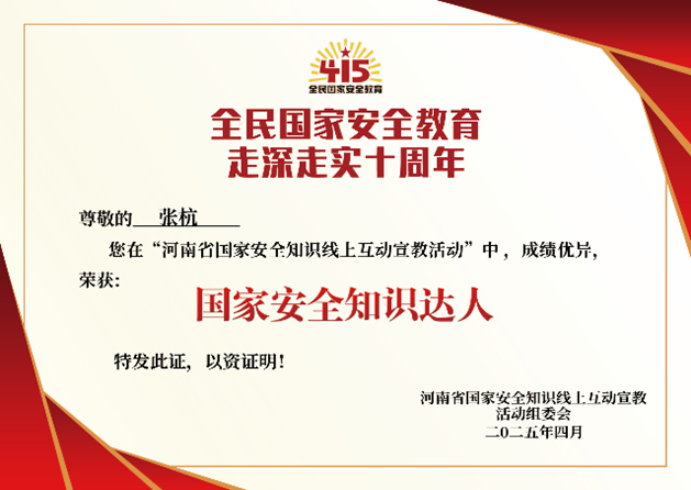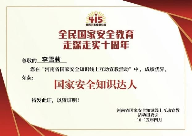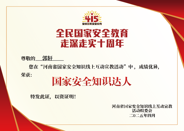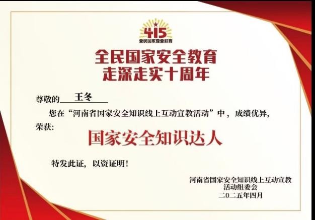 为庆祝全民国家安全教育日,同时纪念全民国家安全教育走深走实十周年,于4月18日3044AM永利集团组织开展了“河南省国家安全知识线上互动活动”。此次活动旨在提升公众国家安全意识,营造维护国家安全的浓厚氛围。