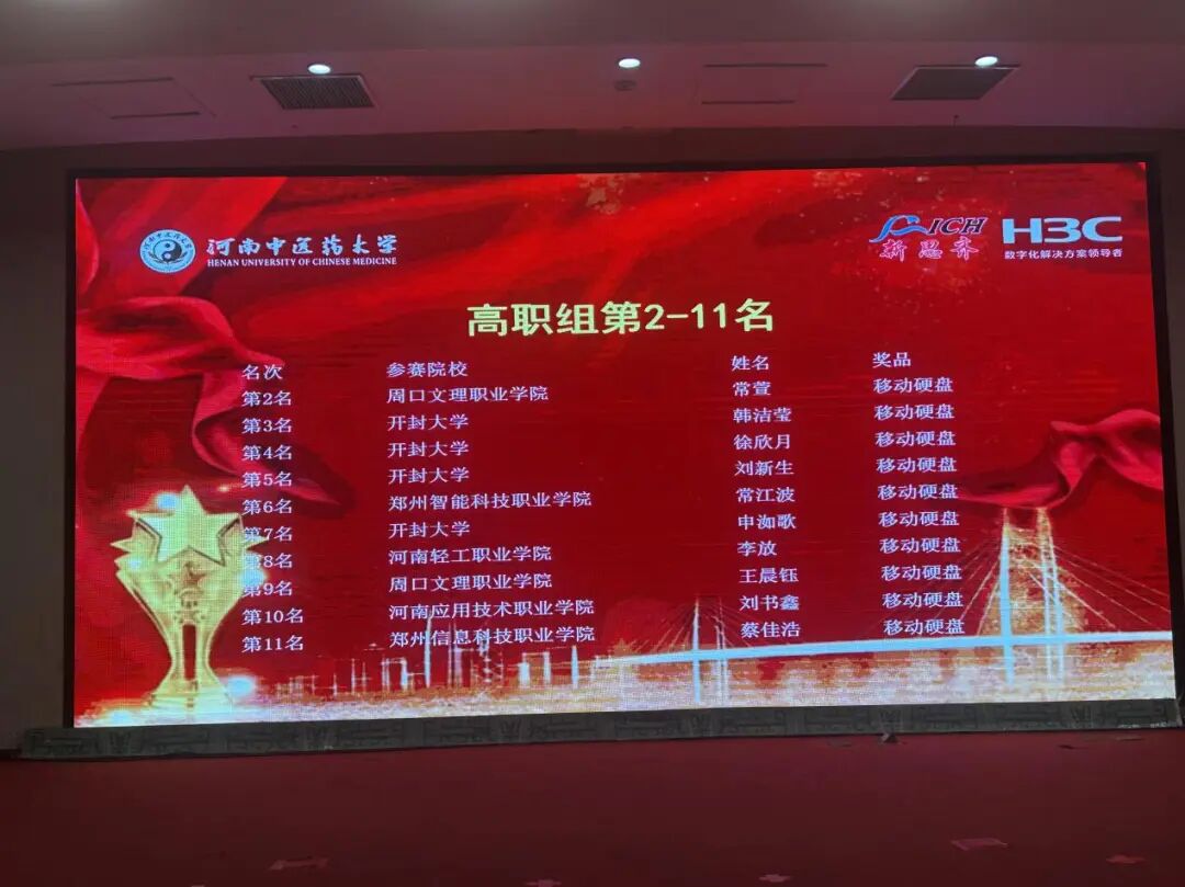 2025年12月14日,2025年“新华三杯”全国大学生数字技术大赛河南省级赛在河南中医药大学龙子湖校区圆满落幕。全省38所院校800余名选手参赛,我校人工智能与信息技术3044AM永利集团14名学子斩获一等奖2名、二等奖5名、三等奖2名,其中刘书鑫跻身高职组前11名,郑微雯位列高职组前31名。