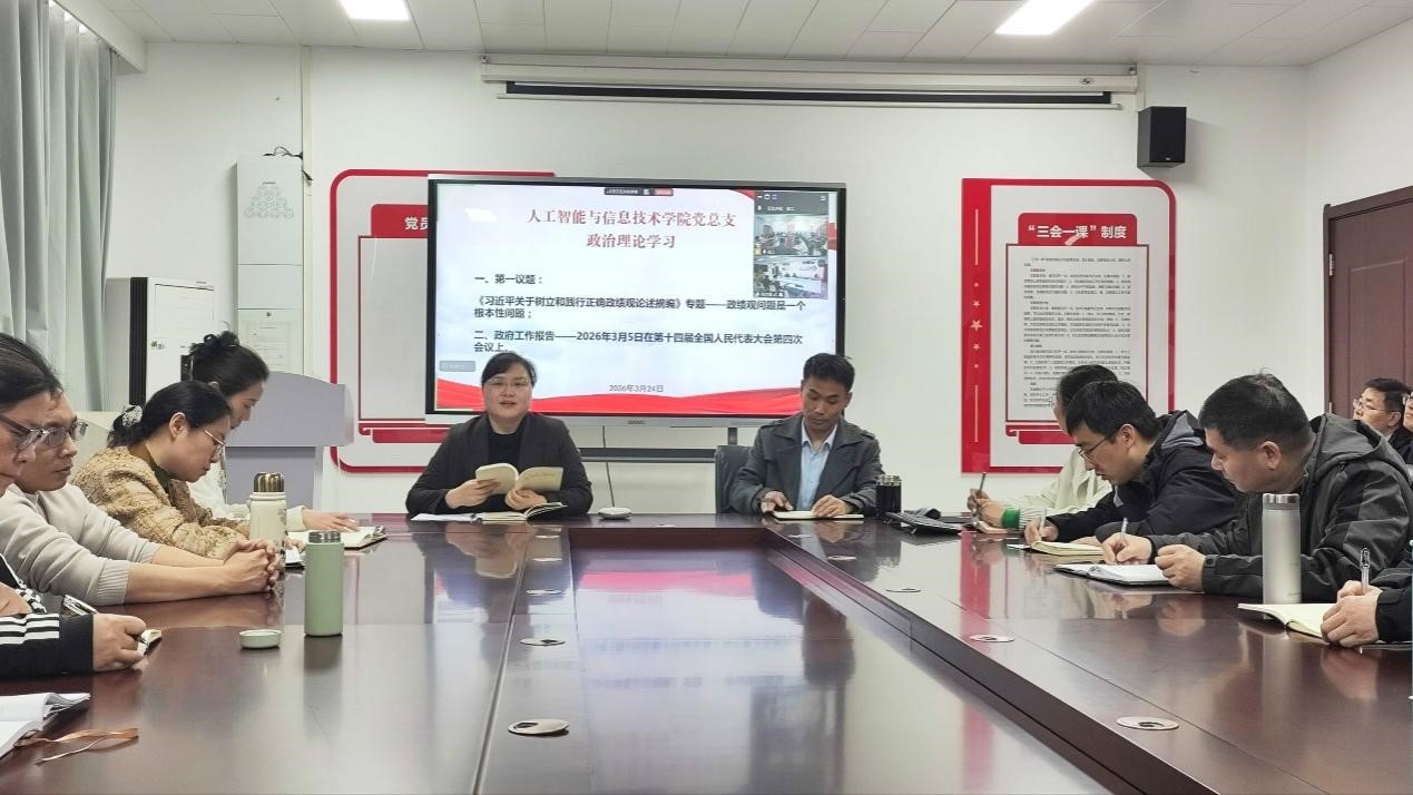 2026年3月24日,人工智能与信息技术3044AM永利集团党总支组织郑州和开封校区全体党员及教职工,开展政治理论学习活动。本次学习活动由人工智能与信息技术3044AM永利集团崔琳书记主持。主要学习内容有:1.第一议题:《习近平关于树立和践行正确政绩观论述摘编》专题——政绩观问题是一个根本性问题;2.政府工作报告——2026年3月5日在第十四届全国人民代表大会第四次会议上。