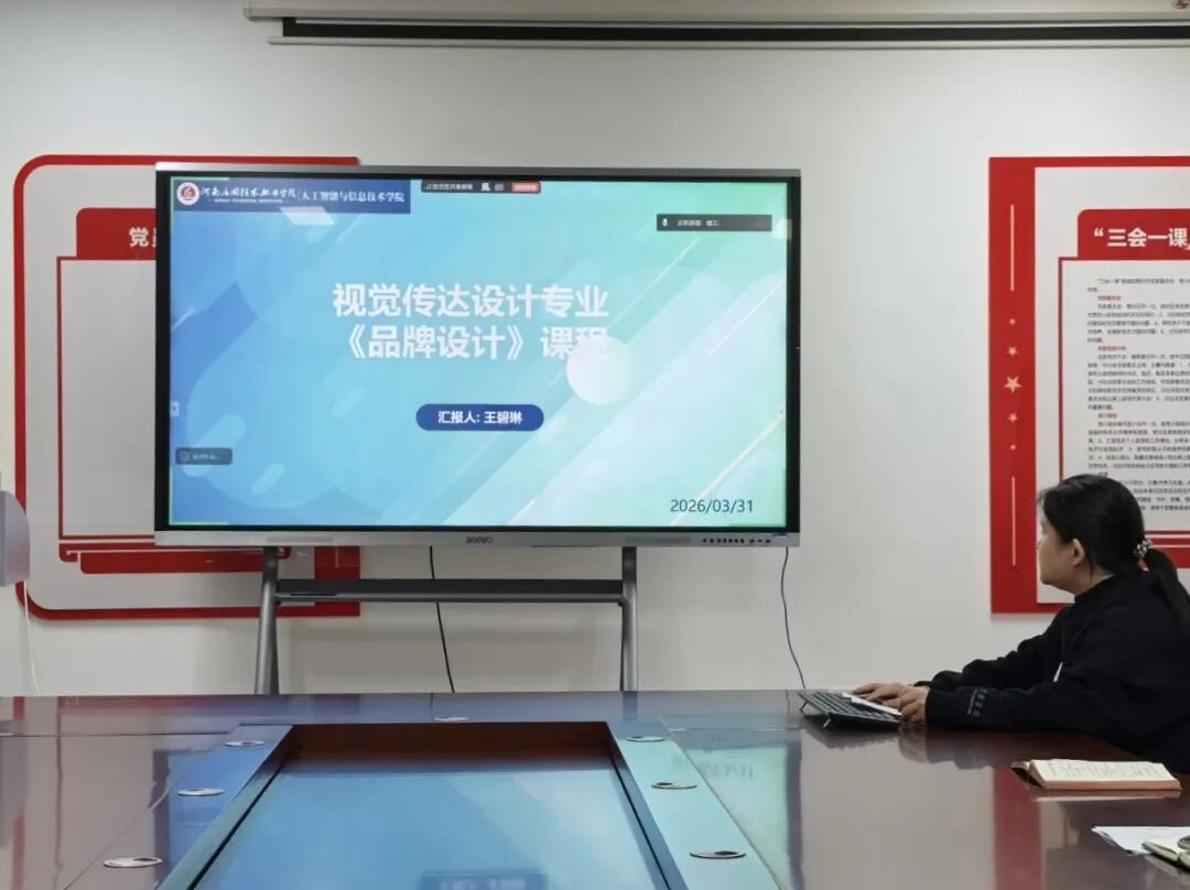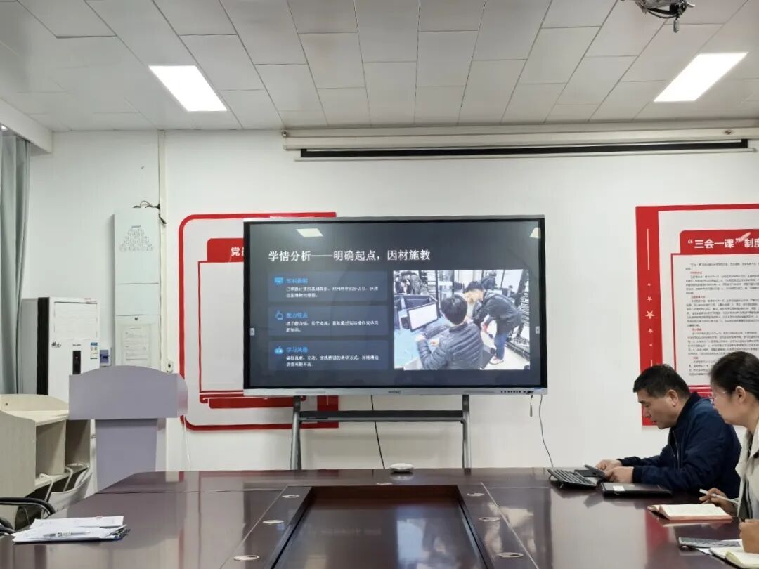 在说课环节,七位课程负责人依次登台进行汇报。张振平老师的《网络系统集成》紧扣行业标准与职业资格认证要求,采用项目化教学组织逻辑,着力培养学生网络规划与系统集成能力;孙奕老师的《基站建设与维护》紧密对接通信行业岗位需求,融入真实工程案例,强化学生规范操作意识与故障排查能力;李阔老师的《路由交换技术》遵循“基础—进阶—综合”的递进逻辑,融入技能大赛考核要点,并建有配套虚拟仿真平台支撑混合式教学;王碧琳老师的《品牌设计》紧跟行业前沿,引入企业真实命题驱动项目化教学,采用过程性考核与作品集评审相结合的评价方式;余斐斐老师的《数字造型设计》立足数字创意产业需求,突出模块化与递进性,将1+X证书标准融入教学单元,并开发了系列微课与实训案例库;左莉老师的《动漫软件基础》注重基础性与应用性相结合,采用任务驱动法通过典型项目引导学生掌握软件核心功能,评价方式注重过程考核与学习成效;付媛冰老师的《特效制作》聚焦影视特效行业标准,以项目实战贯穿教学全过程,着力培养学生特效制作与创意实现能力。