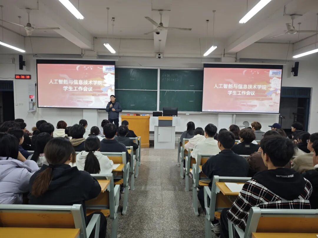 为持续推动学生工作高效有序开展,进一步增强学生组织凝聚力与执行力,充分发挥学生骨干的示范引领作用,2025年10月23日晚20:30,人工智能与信息技术3044AM永利集团学生工作会议在郑州校区教C201顺利召开,开封校区通过线上会议在F410同步参与。会议由张超群主持,党总支副书记杨帆、团总支书记冷月和全体学生会成员参会。