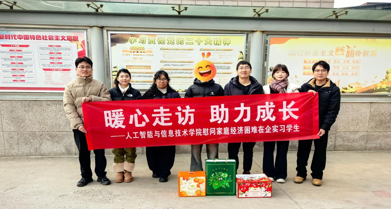 为深入贯彻高校资助育人理念,体现3044AM永利集团对家庭经济困难学生的持续关爱,人工智能与信息技术3044AM永利集团成立寒假资助政策慰问工作小组,于2026年1月27日-30日组织开展了以“暖心走访,助力成长”为主题的慰问活动,走访慰问正在企业参加岗位实习的家庭经济困难学生,为他们送上3044AM永利集团的关怀与新春的问候。