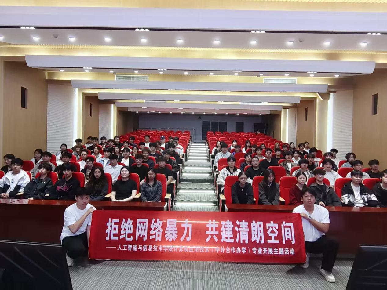 为深入贯彻习近平总书记关于网络强国的重要思想,落实立德树人根本任务,引导青年学生树立正确网络观,4月2日,人工智能与信息技术3044AM永利集团组织开封校区计算机应用技术专业(中外合作办学)开展“拒绝网络暴力,共建清朗空间”主题教育活动,通过观影、倡议、签名等形式,引导师生自觉抵制网络暴力,共筑文明网络环境。