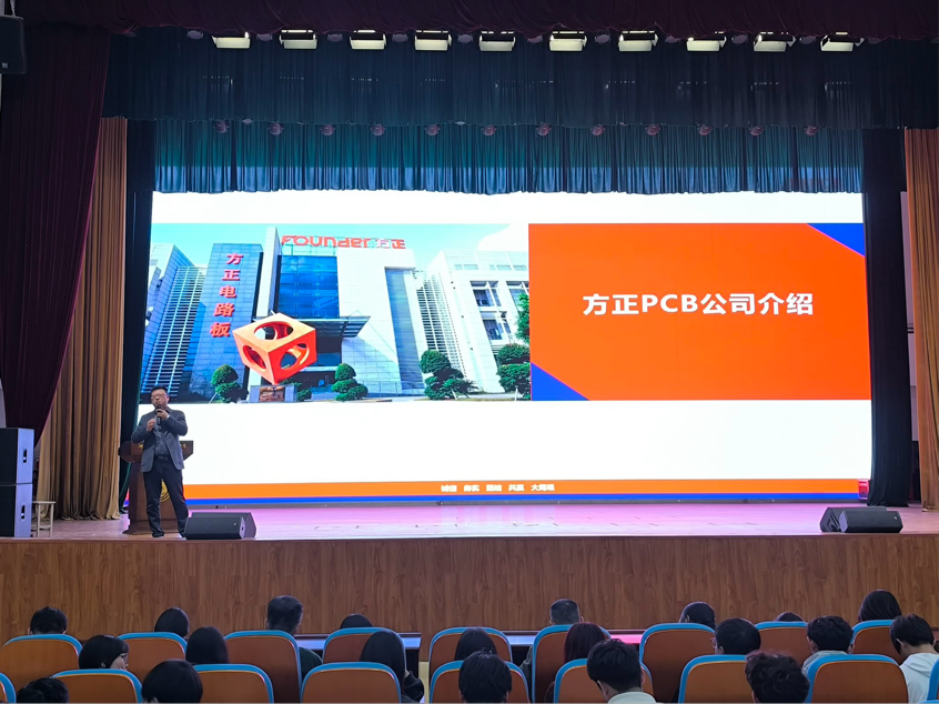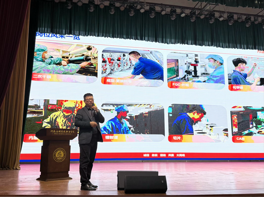 会议现场井然有序,软通动力信息技术股份有限公司、珠海方正PCB、广东奥鑫通讯设备有限公司、安徽飞数信息科技有限公司四家企业代表依次登台,结合自身发展历程、业务布局及行业发展趋势,进行了全面细致的介绍。围绕同学们普遍关注的岗位需求、发展前景、培养体系等内容,企业代表结合专业特色逐一解读,让大家对职场要求与职业规划有了更清晰的认知。