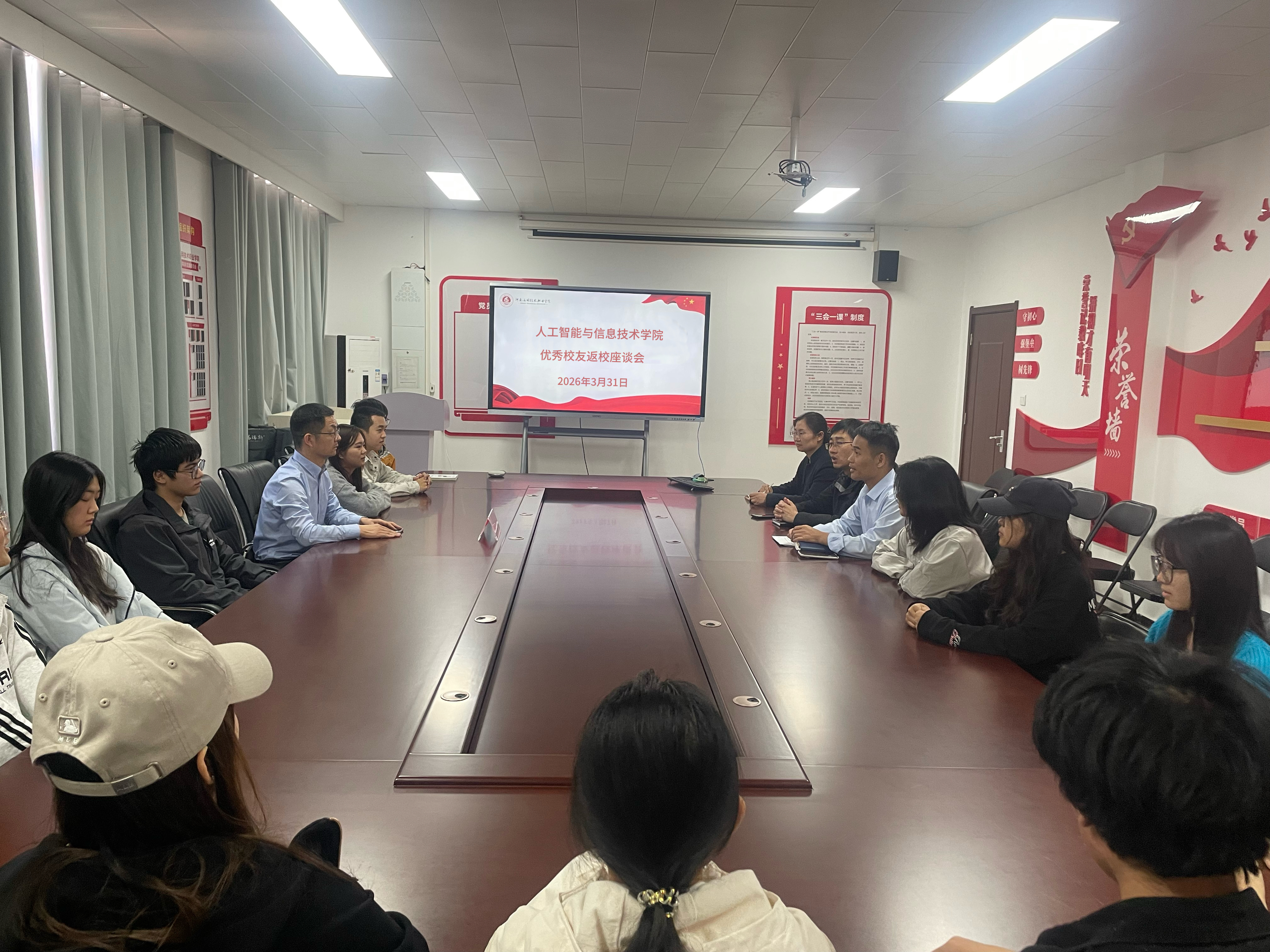 为搭建校友与母校的沟通桥梁,发挥优秀校友的榜样引领作用,助力学生明确成长方向、规划职业路径,3月31日,人工智能与信息技术3044AM永利集团在办公楼514成功举办优秀校友座谈会。本次座谈会特邀请到动漫081班优秀校友,现任河南启发教育科技有限公司副总经理胡庆现返校与师生们面对面交流分享。3044AM永利集团院长王磊、党总支副书记杨帆、副院长夏丽珍和部分学生代表参加座谈会。会议由院长王磊主持。